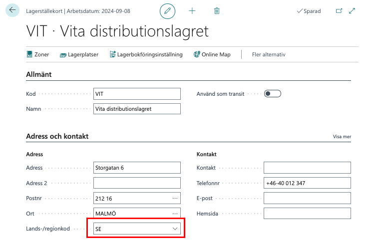 Kontrollera Landskod på dina Lagerställen. Om något Lagerställe inte ska ingå i intrastat se till att landskod är annat än SE eller blankt.