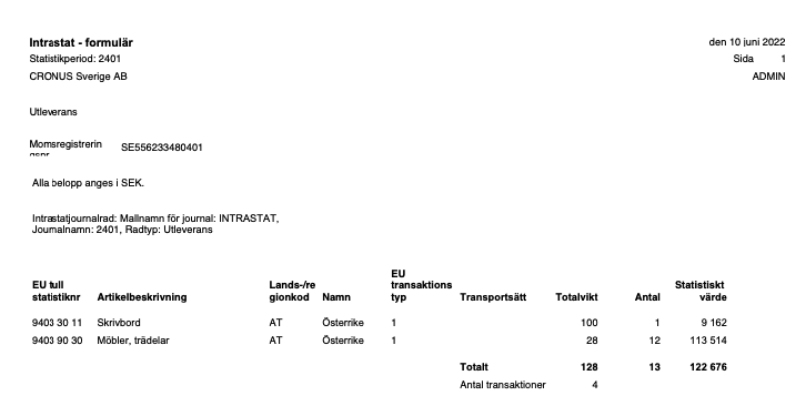 Skriv ut intrastatrapport